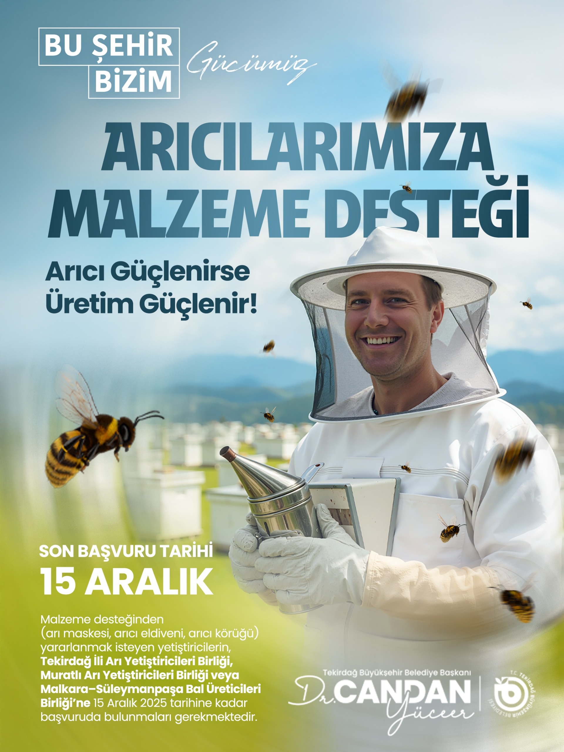 Destekten yararlanmak isteyen arıcıların, üyesi oldukları Tekirdağ Arı Yetiştiriciliği Birliği, Muratlı Arı Yetiştiriciliği Birliği veya Malkara-Süleymanpaşa Bal Üreticileri Birliği’ne başvurmaları gerekiyor. Proje için son başvuru tarihi 15 Aralık 2025 olarak açıklandı.