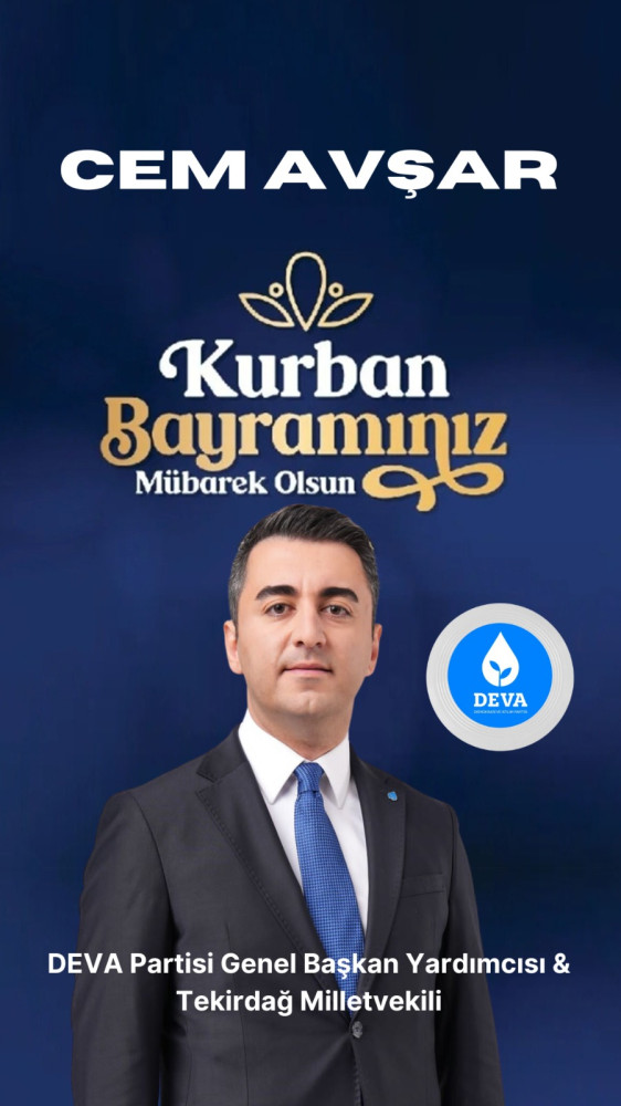DEVA PARTİSİ GENEL BAŞKAN YARDIMCISI VE TEKİRDAĞ MİLLETVEKİLİ CEM AVŞAR KURBAN BAYRAMI MESAJI YAYINLADI