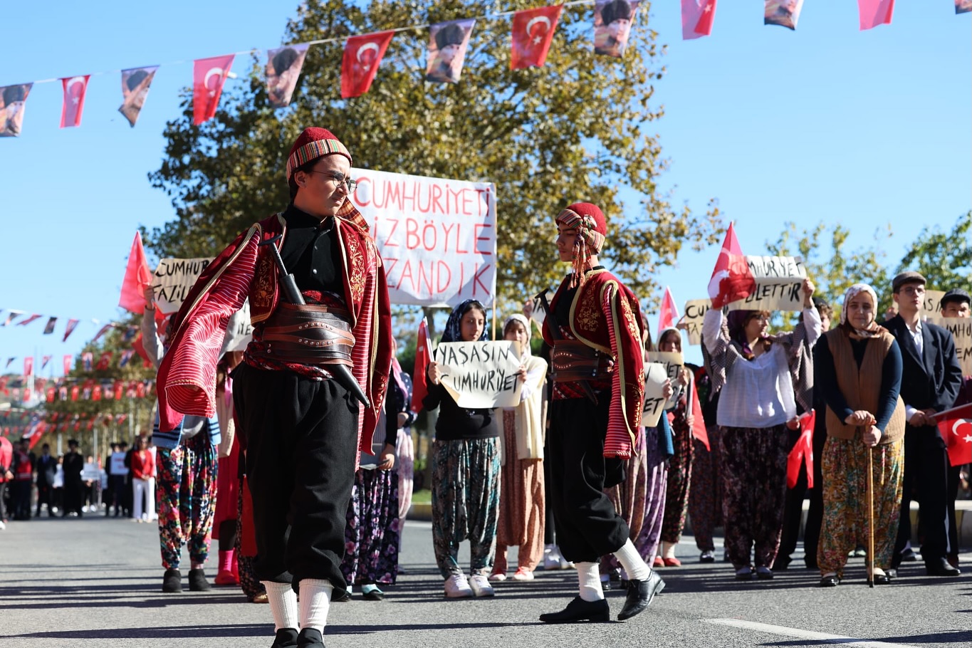 Vali Soytürk’ün günün anlam ve önemine dair yaptığı konuşmanın ardından öğrenciler, “Atatürk ve Cumhuriyet” temalı şiirler okudu. Halk oyunları ekiplerinin gösterileriyle renklenen törende, il genelinde düzenlenen “Cumhuriyet” konulu resim, şiir ve kompozisyon yarışmalarında dereceye giren öğrencilere ödülleri takdim edildi.
